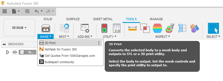 Fusion 360 allows you lot to transport the model to a range of 3D print utilities such as Meshmixer or Formlabs PreForm for 3D printing.