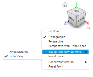 The view cube allows you to manipulate the model in a more than structured fashion. Past clicking either on the corners, edges, or faces of the cube the model will re-oriented inside the sheet. This makes it like shooting fish in a barrel to switch between standard views. If the user clicks the arrow on the bottom correct of the view cube, a drop-down carte du jour appears that provides more options to control the view.